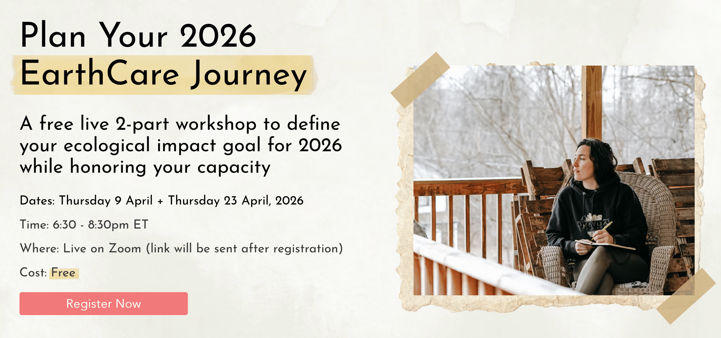 Between sessions, you will have time to use the workbook I created to help you metabolize what you’ve learned, and begin to define your Ecological Impact Goal before the next session. Part Two: Release, Align + Commit to Impact (April 23 - Q&A Coaching)